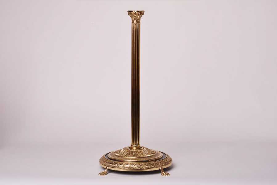 Stojan klasického designu – kombinace leštěné a broušené mosazi. Dostupný i ve stříbrné povrchové úpravě za příplatek 90 eur.